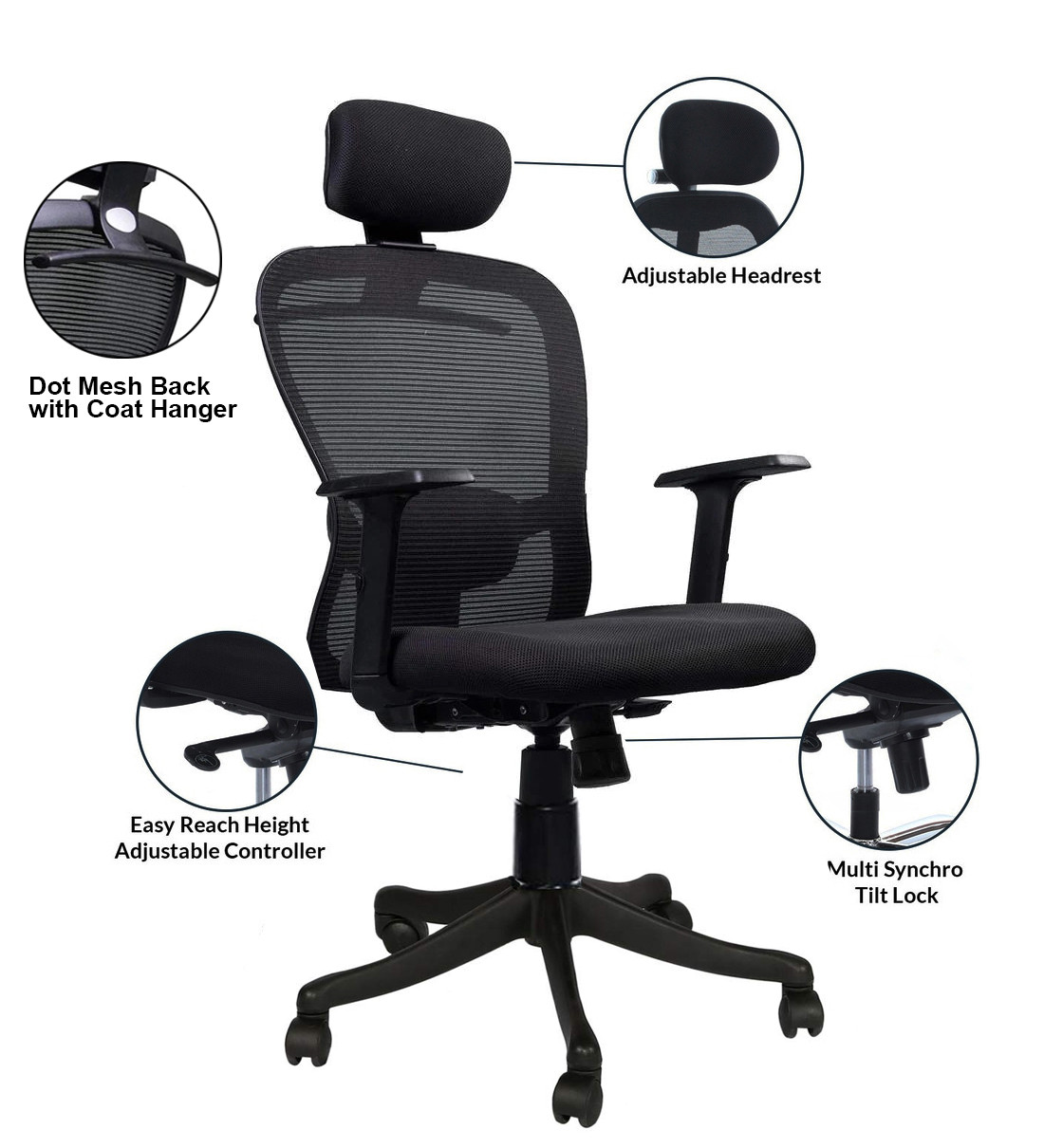 ERGONOMIC DESIGN: Ergonomically engineered Synchro Tilt mechanism allowing users to tilt even while resting their feet on the floor. Adjustable Armrests and Seat Height and Cushioned lumber support. Lever under the seat allows you to lock this chair at 90 degrees and unlock it to rock back upto 105 degrees. Note: You can only lock this chair at 90 degrees and not at 105 degrees.