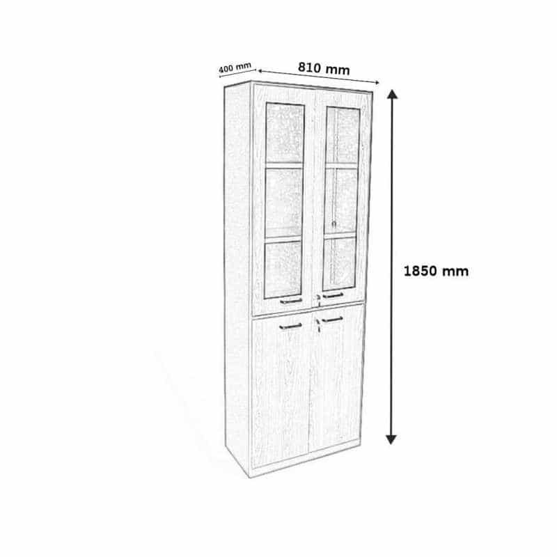 sections, with shelves for maximum utilization of space. The double glass doors