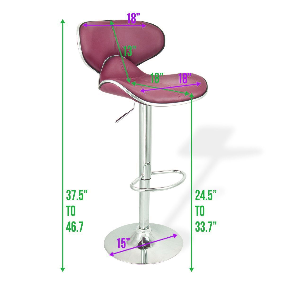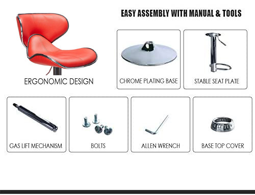 STURDY AND COMFORTABLE BAR STOOLS – Our bar stools are made of heavy duty chrome, padded with foam and covered with leatherette, The bar stools are ergonomically designed: You can lean against the back of the bar chairs and put your legs on the footrest for a better sitting position. The metal frame of our swivel stools is very robust and durable.bar stools swivel stool bar chairs.