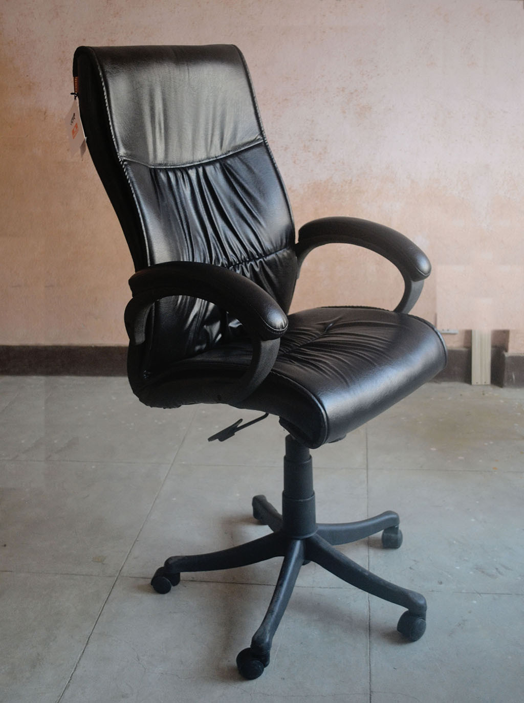 Comfortable high-back executive chair upholstered in bonded black leather and PVC