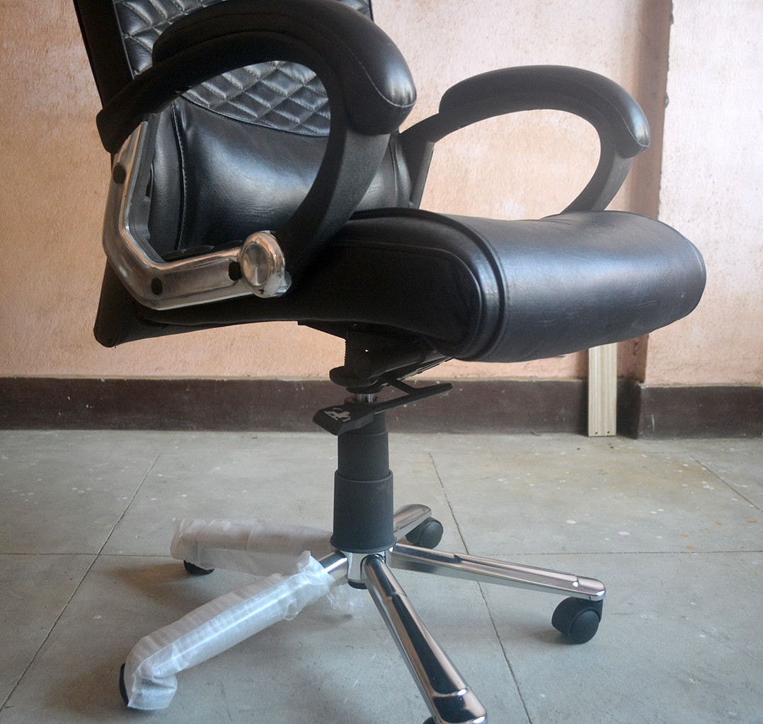 . A tilt and lock mechanism and swivel function support reclining and versatile seating angles. This Realspace Hurston executive chair has padded arms to add comfort.