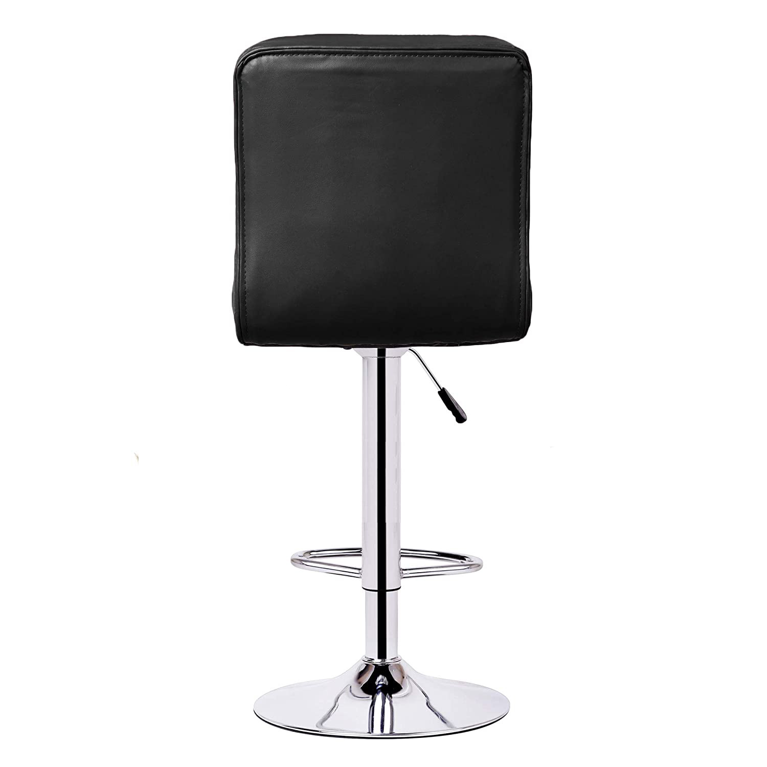 with a built in 360 degree swivel; High density foam upholstered in black faux leather; Constructed with polished chrome base and footrest