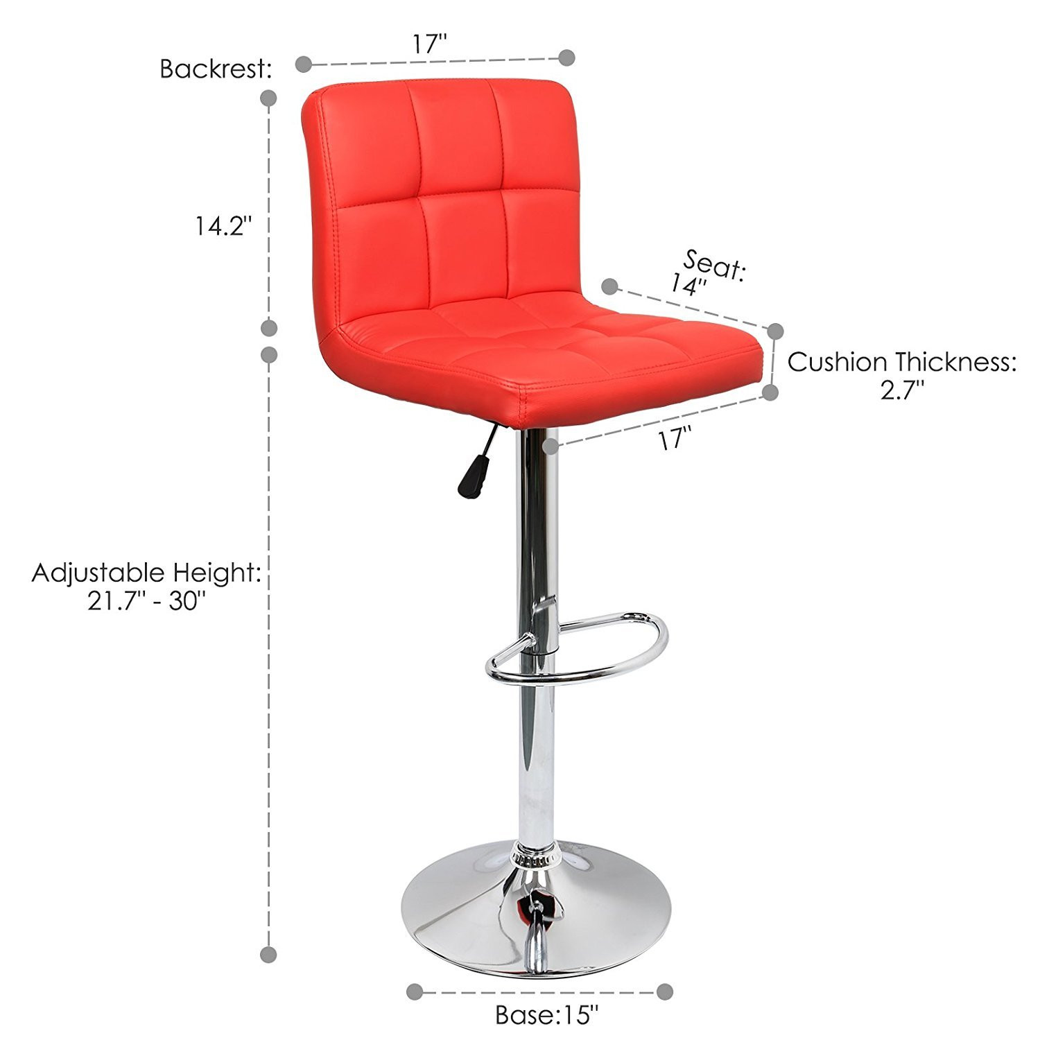 Dimension: 16"W x 15"D x 24"-31.5"H; Seat back dimension: 14.5"W x 12" H; Cushion dimension: 16"W x 15"D; Chrome base diameter 15.15"